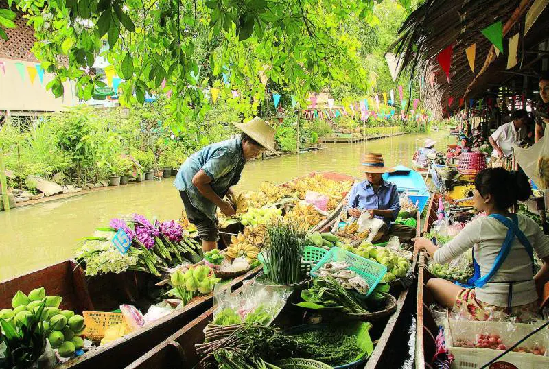 Il Khao-Lam è morbido riso con cocco cotto nelle canne di bambù. Una delizia come tanto street food di Bangkok. Lo si scopre al mercato galleggiante di Khlong lat Mayon. Non ci sono turisti e neppure gadget in questo mercato aperto solo il sabato e la domenica. Frutta e fiori colorati sono disposti con cura: l'attenzione fa parte della raffinatezza thai nelle grandi cose così come nelle minuscole, anche se destinate a durare poche ore. Vicino, si apre un grande vivaio di orchidee, fiore simbolo del Paese, ricco di specie rare. Una corsa in long tail, la tipica barca thai, lungo i canali e si approda al mercato di Wat Sapan a ridosso di un tempio. Nel frattempo, sfilano immagini di vita quotidiana: giare per la raccolta dell'acqua piovana, casette degli spiriti, donne che lavano le stoviglie nelle acque dei canali che si diramano attorno al Chao Phraya. Una corsa sull'efficientissimo sky train (due linee costruite in soli 4 anni e nuovi lavori in corso) e ci si catapulta come in un viaggio nel tempo nel reparto di elettronica del centro commerciale MBK. Ma il fascino sta nel gioco di opposti ed è impossibile non lasciarsi sopraffare dalla raffinatezza delle sete di Jim Thomson nell'elegante centro commerciale di Parong, dalle maioliche colorate del Tempio dell'Aurora, dall'imponenza garbata del Budda nel parco di Phuttamonton e dalla maestria con la quale le donne thai infilano le piccole ghirlande colorate al mercato dei fiori, il più grande di tutta l'Asia, aperto 24 ore.