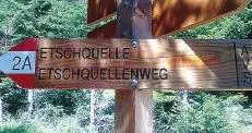 Meglio sarebbe stato per me se non lo avessi fatto. L’unica indicazione in italiano sulla strada da prendere, un minuscolo segnale turistico di color marron, è stato affisso dagli altoatesini sotto una sfilza di cartelli bianchi che indicano i vari alberghi della zona. Praticamente invisibile. Raggiunto il primo gruppo di case, già non capisci se devi prendere a sinistra o a destra. Poco dopo cominci a incontrare delle esoteriche frecce direzionali di legno: «2A Etschquelle Etschquellenweg». Su alcune di esse una mano pietosa ha inciso con la biro «Adige», ma chi non conosce il tedesco deve perlomeno non essere miope, perché il sole ha ormai stinto l’improvvisata traduzione.