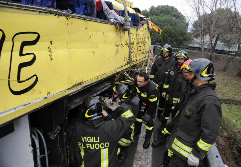 persone, fra cui un ragazzo di 13 anni, ed il ferimento grave di altri passeggeri. Il pullman della società francese Les Cars Magne, secondo una ricostruzione dei vigili del fuoco, è uscito dalla carreggiata rovesciandosi.