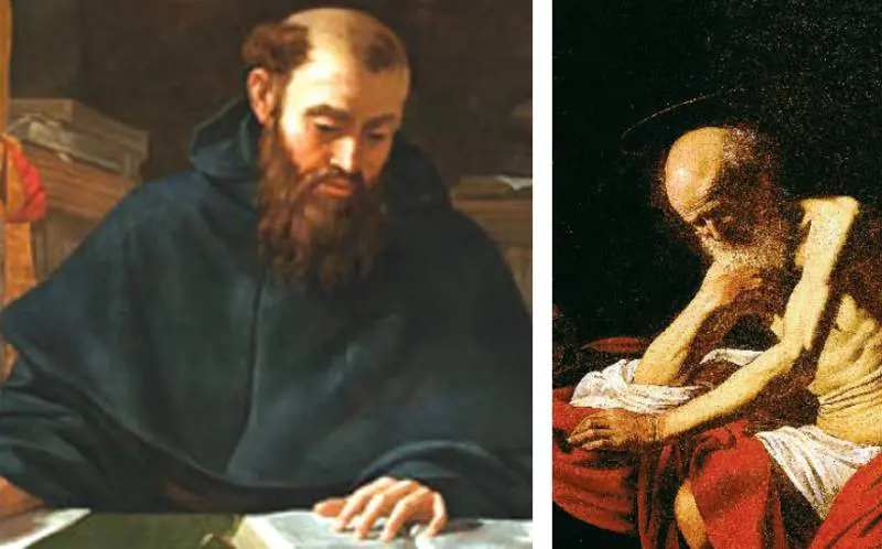 Se è vero infatti che il presunto Sant’Agostino riemerge solo adesso, il San Gerolamo è stato identificato nel 1974 da Maurizio Marini in un dipinto conservato nel museo del monastero catalano di Montserrat. Il problema è che i due quadri in questione non costituiscono affatto una coppia. Sulle dimensioni potremmo anche esserci, perché il Sant’Agostino misura 120x99, mentre il San Gerolamo è 118x81, però potrebbe essere stato decurtato. Ma la tela di Montserrat è una sorta di punto mediano tra il San Giovanni Battista di Kansas City, di cui riprende la postura, e il San Gerolamo della Galleria Borghese, due dipinti collocati unanimemente dalla critica nel 1605. Il Sant’Agostino invece, se mai fosse di Caravaggio, per questioni stilistiche non potrebbe superare il 1600, come ammette la stessa Danesi Squarzina. Che razza di pendant sarebbe allora, quello composto da due dipinti di epoca diversa, in cui la postura dei personaggi è differente, e differenti sono gli attributi (Sant’Agostino ha a lato il cappello cardinalizio, San Girolamo no, l’uno ha i libri e l'altro è senza Vulgata)? E che dire poi, per tornare allo stile, dell’incompatibilità della tavolozza, del modellato, della resa prospettica, e soprattutto del trattamento della luce? Con tutta evidenza uno dei due quadri è un «intruso». Ma il San Gerolamo, proprio per la sua evidente tangenza alle opere certe dell’ultimo periodo romano del Caravaggio, resta infinitamente più convincente.
