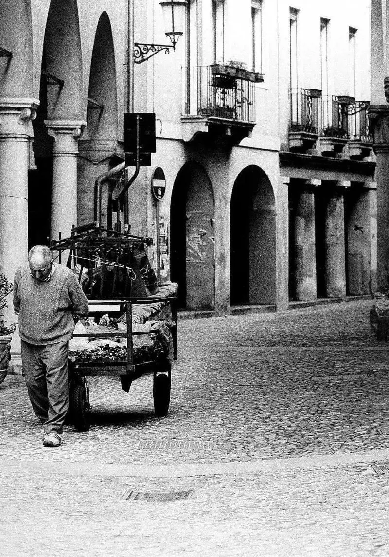 Sguardi molto diversi, quelli di Giovanni Umicini e Gabriele Basilico. Due mostre ne raccontano i differenti approcci. Il primo ci regala una Padova intima, magica, sofferente. Un luogo pervaso da un profondo senso di solitudine. Città nel tempo, la sua, con scatti che abbracciano un periodo lunghissimo: dagli anni Cinquanta (epoca del suo trasferimento qui dalla nativa Toscana), a oggi: 162 immagini intimiste, concentrate sui volti e sui gesti della gente di strada. Unumanità che tace, che è cristallizzata nel momento, quasi fino a non appartenere a nessuna epoca. Sono bambini che giocano, spazzini al lavoro, anziani dimenticati, innamorati in bicicletta molto diversi da quelli che avrebbe ritratto Doisneau nella sua Parigi. Qui, nella Padova di Umicini, sembra di intravedere la Roma di Pasolini, fatta di corpi e memoria e dolorosa consapevolezza. Il reporter sembra vivere ogni evoluzione interiore.