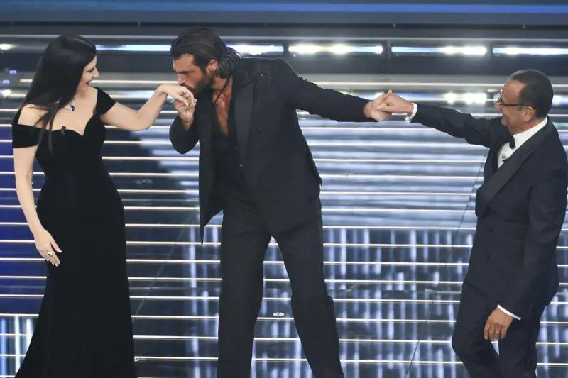 Can Yaman è riuscito a fare intonare a Laura Pausini una canzone in turco. Pausini ha eseguito seguendo le parole suggerite da Yaman, che le ha poi detto: "Ci dobbiamo ancora lavorare". Yaman era entrato in scena sulle note della storica sigla di 'Sandokan'. Gag con Carlo Conti che, rivolgendosi a Pausini, ha commentato la tintarella di Yaman dicendo "guarda che abbronzatura". "È l'unica cosa che avete in comune", ha replicato Pausini. "Volevo trovare un motivo per venire a Sanremo. Forse è proprio l'abbronzatura", ha scherzato Yaman. "La più bianca sono io", ha concluso Pausini.
