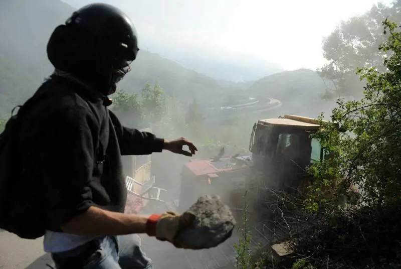 L'assalto al cantiere I dimostranti hanno lanciato all’indirizzo delle Forze di Polizia grosse pietre, petardi, fumogeni, alcune bombe carta, vari artifizi pirotecnici. Inoltre, hanno attaccato un cavo metallico alla rete nel tentativo di sradicarla, ma la fune è stata prontamente recisa dagli operatori posti a difesa della recinzione. Gli stessi, infine, appiccavano dolosamente dei roghi nella zona boschiva prospiciente il Museo archeologico, immediatamente spenti dal personale operante. Il fallito tentativo di danneggiare la rete spingeva i manifestanti ad attaccare strenuamente le Forze di Polizia. I facinorosi non desistevano dalle loro azioni violente, nonostante l’impiego dei lacrimogeni e dell’idrante utilizzati per dissuaderli, ma le protraevano nel tempo e con veemenza. L’azione di attacco si prolungava per oltre un’ora e dopo una breve pausa di circa dieci minuti, i manifestanti riprendevano il lancio di oggetti contundenti, fumogeni, petardi e bulloni. Un terzo attacco alla recinzione sotto il viadotto autostradale iniziava alle ore 01.20 e veniva respinto da una rapida manovra dei reparti schierati oltre la recinzione della valle Clarea. Durante il deflusso, alle ore 02.00, un gruppo di facinorosi riprendeva il lancio di pietre dalla boscaglia limitrofa all’area archeologica da dove veniva respinto.