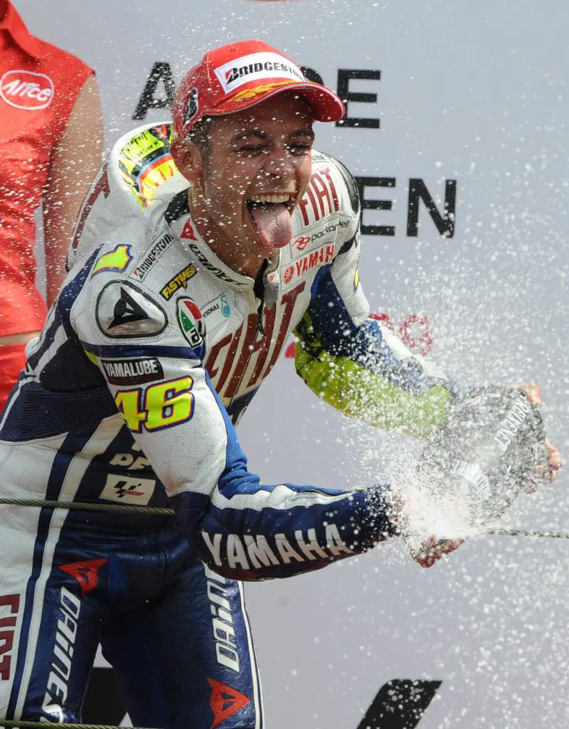 Il resto, oggi almeno per favore, non deve riguardarmi e riguardarci, la storia dell’evasione fiscale, il contenzioso ultramilionario con l’erario, vicende per le quali il signor Rossi, e non più Valentino, sa quello che dovrà e saprà fare. E farà. Ma l’italiano astioso è capace anche stavolta di tirare fuori la vecchia storia, l’italiano grigio e livido non vuole e non riesce a godere di questo bambino di anni trenta che da tredici sta facendo avvelenare il fegato dei suoi rivali, ex amici, ex campioni, comunque colleghi di giornata, come vecchie zitelle inacidite. E, sempre da tredici anni, sa organizzare il nostro dopo pranzo, un digestivo a trecento all’ora non è poi così male, questa è la vera happy hour. Non c’è pallone che tenga, non ci sono rigori non fischiati, prove tv, moviole, arbitri cornuti, bombe carta, invasioni di campo e devi morire, qui c’è un uomo solo al comando e basta.