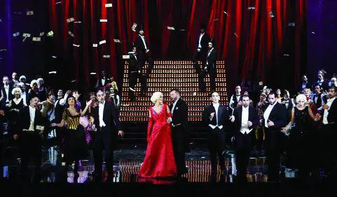 Sospiri, tradimenti, ciprie e taffetà: gli ingredienti giusti per attirare pubblico: la ricetta riempi-teatro degli ultimi mesi sembra più che mai trionfare. Ma capiamoci. Non c'è nulla da obiettare, anzi è rinfrancante vedere persone che si perdono nelle scale cercando la toilette: vuol dire che finalmente anche loro hanno scelto il Carlo Felice. Ma dando uno sguardo alla platea, venerdì sera, saltava anche agli occhi che il solito pubblico delle «prime» non c'era. Non parliamo del pubblico borioso e snob, ma del pubblico intenditore, quello che ormai rimane a casa o sceglie altri teatri con un'offerta qualitativa più elevata. E allora ci sia concesso dire che un teatro deve attirare sì nuovo pubblico, ma non può e non deve perdere quello vecchio. Ma veniamo al dunque. Questa «Vedova» non poteva annoiare: impatto scenico di grande effetto, costumi sgargianti, trovate esilaranti che hanno coinvolto il pubblico incessantemente. Anche troppo. Ma mancavano quelli che dell'operetta sono gli elementi essenziali: la presenza di un cast che unisce alle doti vocali anche la verve teatrale; la coesione d'insieme; la vena patetica, che alla fine ha reso pienamente solo il valzer. Aggiungiamo infine che la sintonia buca-palcoscenico è stata quasi del tutto assente. Bravo Christopher Franklin e brava l'orchestra soprattutto nei pezzi meramente strumentali, ma non convincente il dialogo con i cantanti, che sembravano appartenere ad un altro mondo (musicale). Spesso confinati a cantare sul fondo del palco, quasi non si sentivano; e davvero non impeccabili dal punto di vista vocale, a volte anche con grossi problemi d'intonazione, nonostante alcuni timbri interessanti (Silvia Dalla Benetta e Davinia Rodriguez). Ma soprattutto carenti dal punto di vista teatrale.