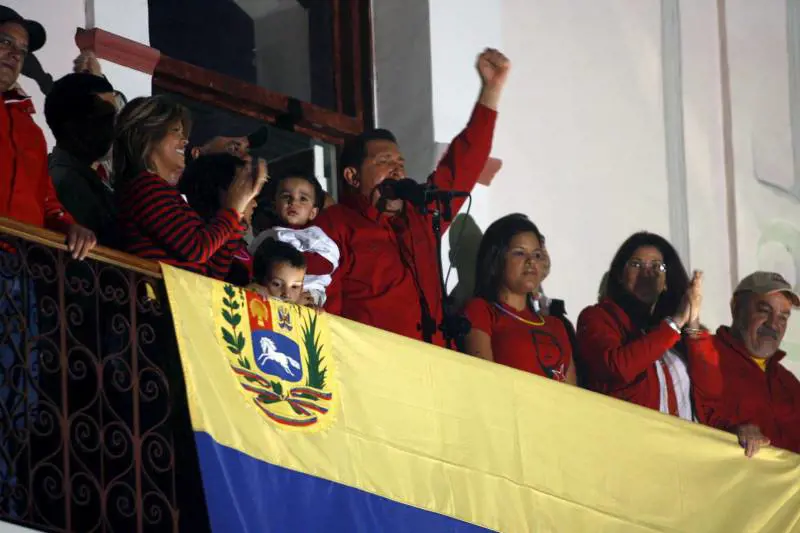 Chavez si è affacciato da un balcone del 'Palazzo Miraflores', sede della presidenza a Caracas, dove ha fatto un intervento fiume salutato dai suoi simpatizzanti, molti dei quali indossavano la camicia rossa dei militanti del socialismo "chavista". Nel discorso in cui ha salutato "la vittoria del popolo", il presidente ha intrecciato analisi politica, canzoni, citazioni letterarie (tra le quali Jorge Luis Borges), ricordi familiari, oltre a intonare brevemente "El pueblo unido jamas sera' vencido". Saluto speciale per Fidel Castro, che "dieci secondi" dopo l'annuncio della vittoria ha inviato un messaggio a Caracas, dicendo che la vittoria del presidente ha avuto "una dimensione tale da non poter essere misurata".