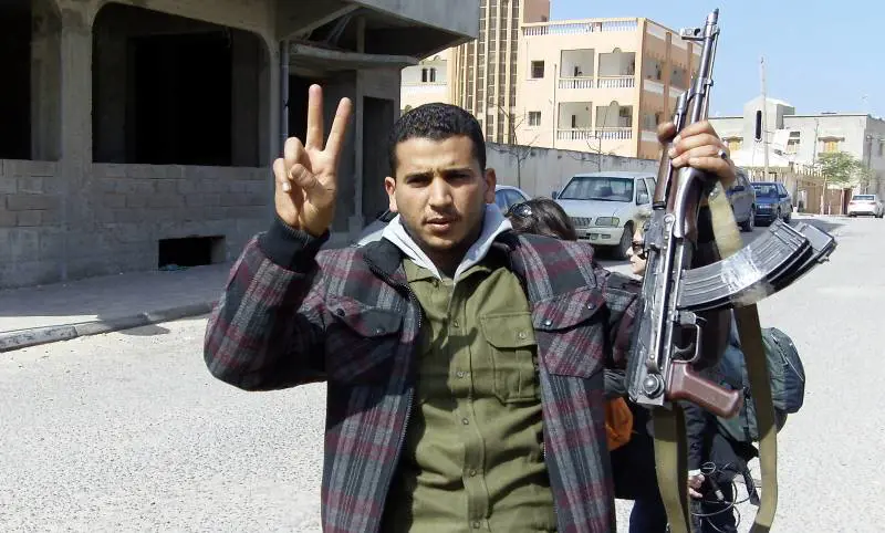Giovani in divisa da soldati sparano in aria con una mitragliatrice contraerea per salutare l’arrivo dei giornalisti. Almeno cinquemila persone avanzano in corteo gridando a ripetizione: «Al Zawia è libera. Il popolo vuole abbattere il regime di Gheddafi». Un libico baffuto è armato con un fucile da caccia, un altro agita un'accetta ed i bambini si fanno fotografare con l'elmetto e le dita a V in segno di vittoria. Altri salgono sui carri armati, che presidiano la piazza e bruciano il libretto verde, la Bibbia della rivoluzione di Gheddafi.