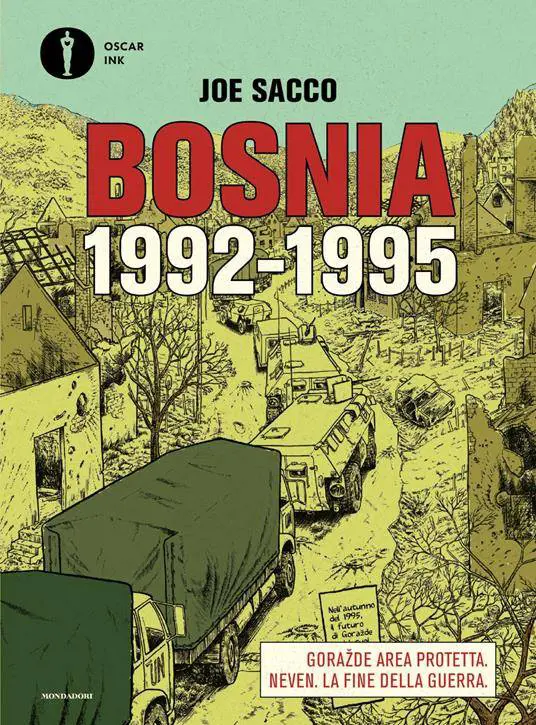 Quello di Sacco è un racconto per dettagli. Ci sono le case bruciate esattamente come le ha viste chi abbia avuto l'avventura di passare per la Bosnia anche anni dopo il conflitto. Spesso sopravvive solo il camino. Ci sono le persone con le loro vite dai fili spezzati. Si era amici il giorno prima che scoppiasse il conflitto e il giorno dopo non ci si poteva più parlare, al massimo sparare. Serbi da una parte, Musulmani e Croati dall'altra. C'è il disegno preciso della piaga frastagliata che un colpo di Rpg lascia su un muro. E poi c'è anche molta normalità, la voglia di vivere che non se ne va, che si infiltra nelle crepe della guerra civile: le feste organizzate per accogliere i giornalisti, dove l'alcol scorre a fiumi. Le ragazze che trovano comunque il tempo per amoreggiare, i bambini che giocano con niente. C'è anche il buio notturno di una città che per molti versi è tornata al Medioevo e la creatività di guerra. Come i mulini galleggianti sulla Drina utilizzati per produrre un po' di elettricità. Poi certo ci sono pagine in cui irrompe la battaglia guerreggiata, i ricordi degli scontri fatti dai superstiti. I carri armati e le esecuzioni sommarie, le fughe, le avanzate, il non senso che porta a radere al suolo qualunque cosa con la speranza che non torni più nessuno: pulizia etnica.