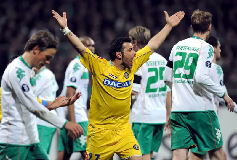 Il Werder non perdona gli errori e in un minuto chiude il match: magia di Diego al 22’ che, dopo un dribbling secco su D’Agostino, supera Handanovic con un tiro a girare; scatto sul filo del fuorigioco di Hugo Almeida che al 23’ fulmina il portiere dell’Udinese di sinistro.