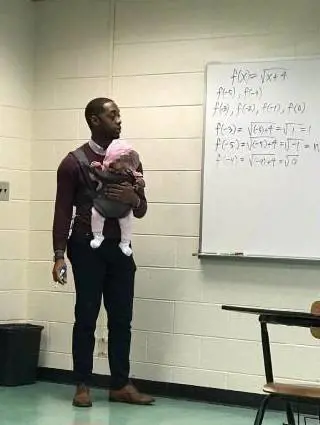 La foto ha già fatto il giro dei social e l'immagine del professore che porta nel marsupio la bimba di un suo alunno è virale. È successo al Morehouse College di Atlanta.