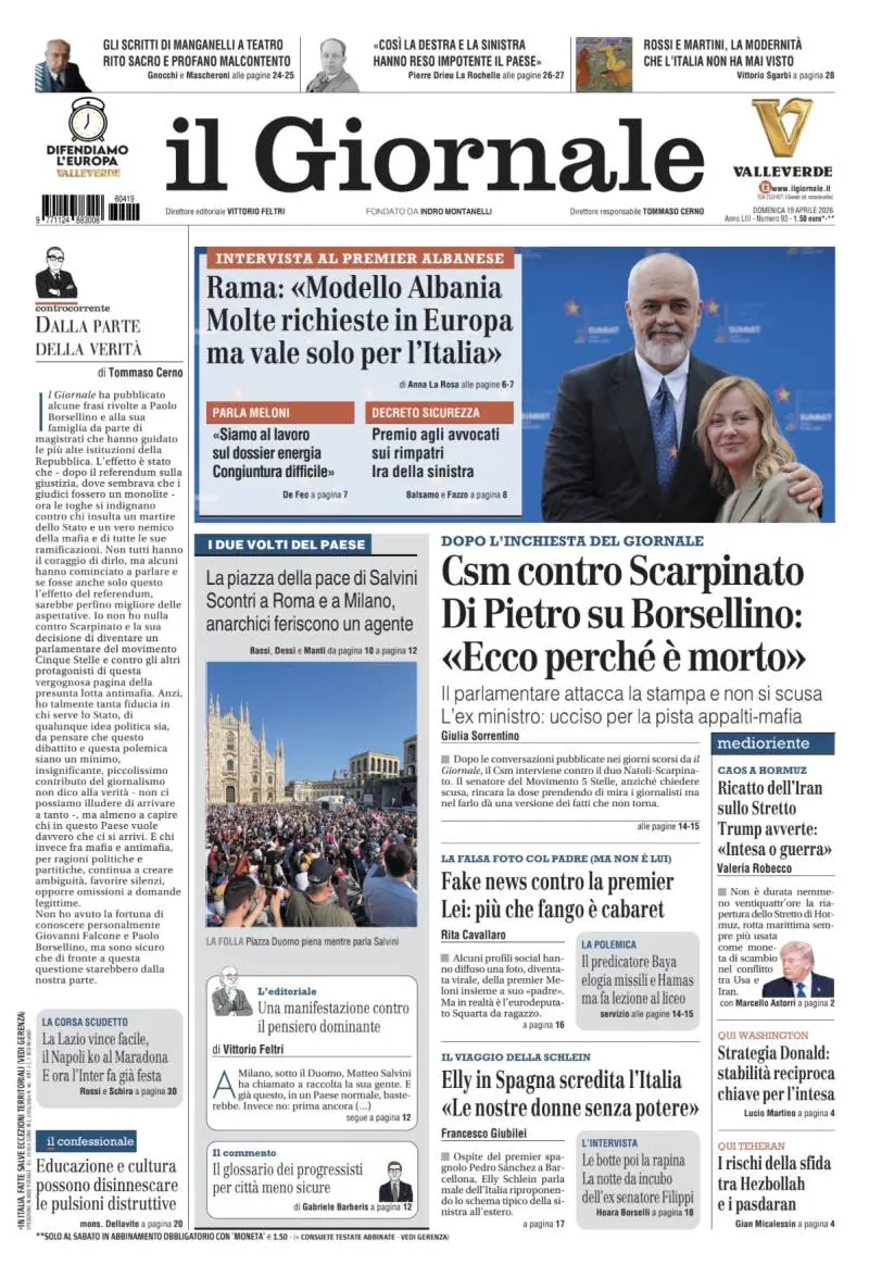 Possibile svolta in Medio Orientee pace più vicina; il caso delle intercettazioni dei giudici Natoli e Scarpinato; Saviano salvato dalla toga promigranti