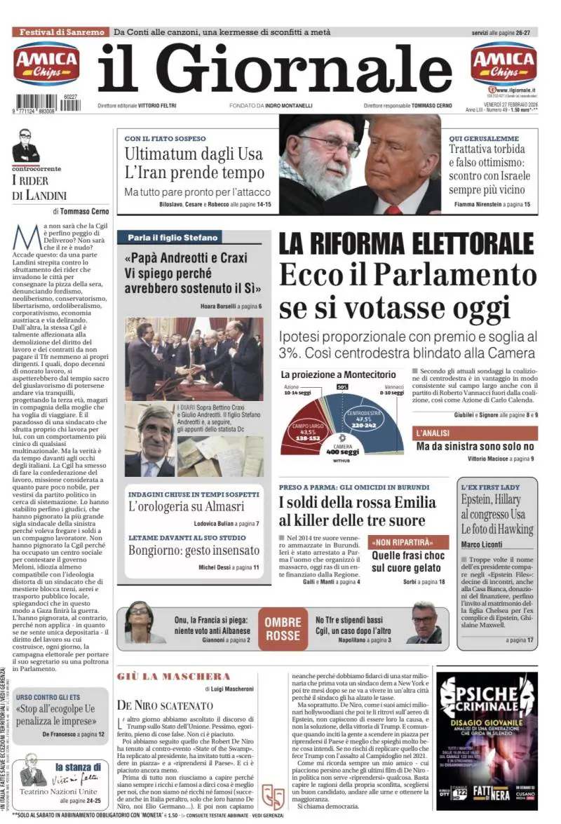 Ira Macron: insulti all'Italia per l’omicidio Quentin; la sfida di Meloni sul referendum: “Votate per voi non contro di me”; le indagini sul caso Epstein si addensano sul fratello di re Carlo, indagato. Questo e molto altro nel Giornale in edicola