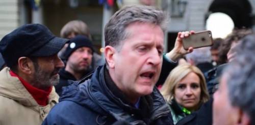 Acceso faccia a faccia durante una manifestazione contro le Olimpiadi a Torino. Il vicesindaco, Guido Montanari, ha discusso con un dimostrante: "Mi fai finire di parlare?"