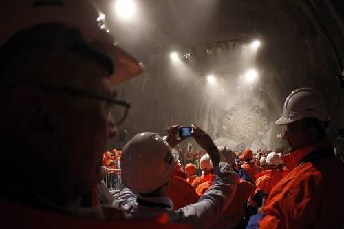 Abbattuto l’ultimo diaframma di roccia della nuova galleria del San Gottardo. Con i suoi 57 km diventerà la galleria più lunga del mondo. La nuova trasversale alpina unirà Genova a Rotterdam